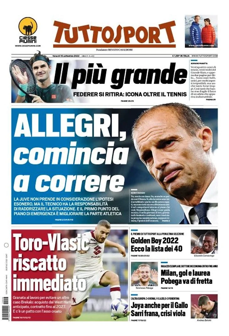Аллегри, начинай бежать. Заголовки Gazzetta, TuttoSport и Corriere за 16 сентября