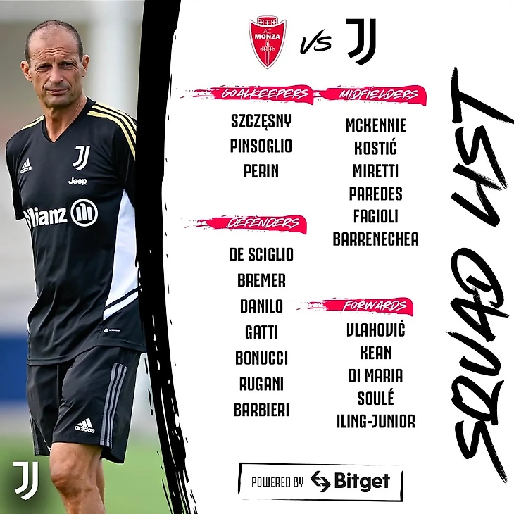 «Ювентус» опубликовал заявку на завтрашний матч против «Монца».