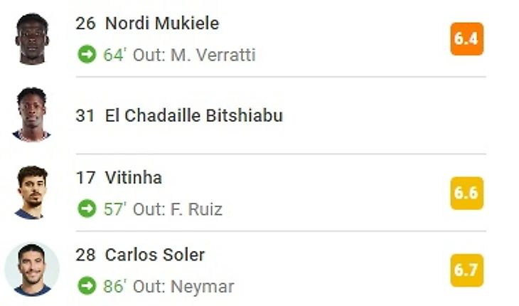 За это, а также за большой процент выигранных единоборств, Лео и получил лучшую оценку среди всех игроков — 8.7. Худший результат у Хакими, который провел все 90 минут на поле, и у Мукиеле, вышедшего на замену вместо Верратти.