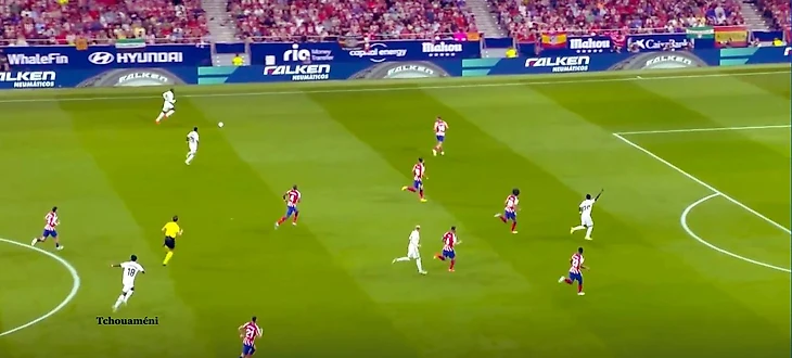 📍На 18-й минуте оказалось, что команда Симеоне не смогла справиться также с вариативными перемещениями Тчуамени, Валверде, Винисиуса и Родриго. Игроки Реала сделали все возможное, чтобы своими маневрами раздробить и создать хаос в линии полузащиты соперников.