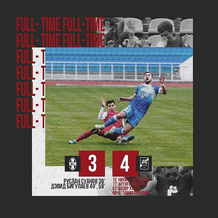 В компенсированное время опять хозяева устроили навал, попадают в перекладину, опять скоростная контратака нальчан и 3:4! Тамаз Топурия оформил окончательный счет на табло!