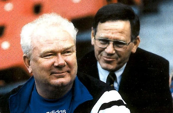 Несмотря на весь пессимизм Игоря, с «Днепром» такое случалось и раньше. Они выиграли чемпионат СССР в 1983 году, классно обыграв московский «Спартак» со счетом 4:2 в последний день сезона, завоевав титул, а затем снова, что еще более примечательно, пять лет спустя, несмотря на потерю двух своих лучших игроков, Геннадия Литовченко и Олега Протасова, которые накануне сезона перешли в «Динамо». Их менеджером во время этого второго триумфа был Евгений Кучеревский, и после периода в России с тульским «Арсеналом» он вернулся в клуб. С его потрепанным лицом и растрепанными волосами — представьте себе более высокую и коренастую версию Эрика Гейтса — его сразу узнают как одного из футболистов старой школы, которых больше нет в английском футболе или, по крайней мере, в его высших эшелонах. Он каким-то образом одновременно полон энтузиазма и устал от мира, как будто цинизм, накопленный годами разочарований, не может полностью погасить его страсть к игре. «Честно говоря, я не думал, что команда будет бороться за титул в том сезоне, — вспоминал он. — Во время предсезонной подготовки я сказал игрокам: "Я знаю, что некоторые из вас были недовольны тем, что все газеты писали о Литовченко и Протасове, но теперь они ушли, и вы должны доказать, что достойны похвалы". На всей скамейке не хватало лишь двух гвоздей».