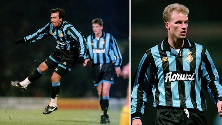 Форма миланского «Интера» начала 90-х приобрела популярность, которая, к сожалению, основана на дезинформации. Спонсором клуба в те времена был Fiorucci, но не культовый итальянский лейбл, любимый Энди Уорхолом и Мадонной, а мясомолочная компания. Однако это не умаляет комплектов. В том числе и этот, в котором светло-голубой цвет сочетался с контрастными золотыми деталями.