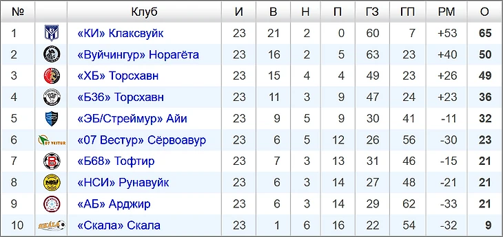 Лучшие бомбардиры: Ватнамар («Вуйчингур») – 18 голов; Бьярталуй («КИ») – 14 голов; Клеттскар («КИ») – 13 голов