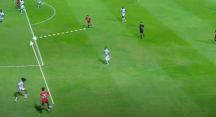 Первый гол получился особенным, Салах устремился в непривычную зону в левом полуфланге. В момент приёма мяча Мо пропустил его, чтобы защитник выдернулся.