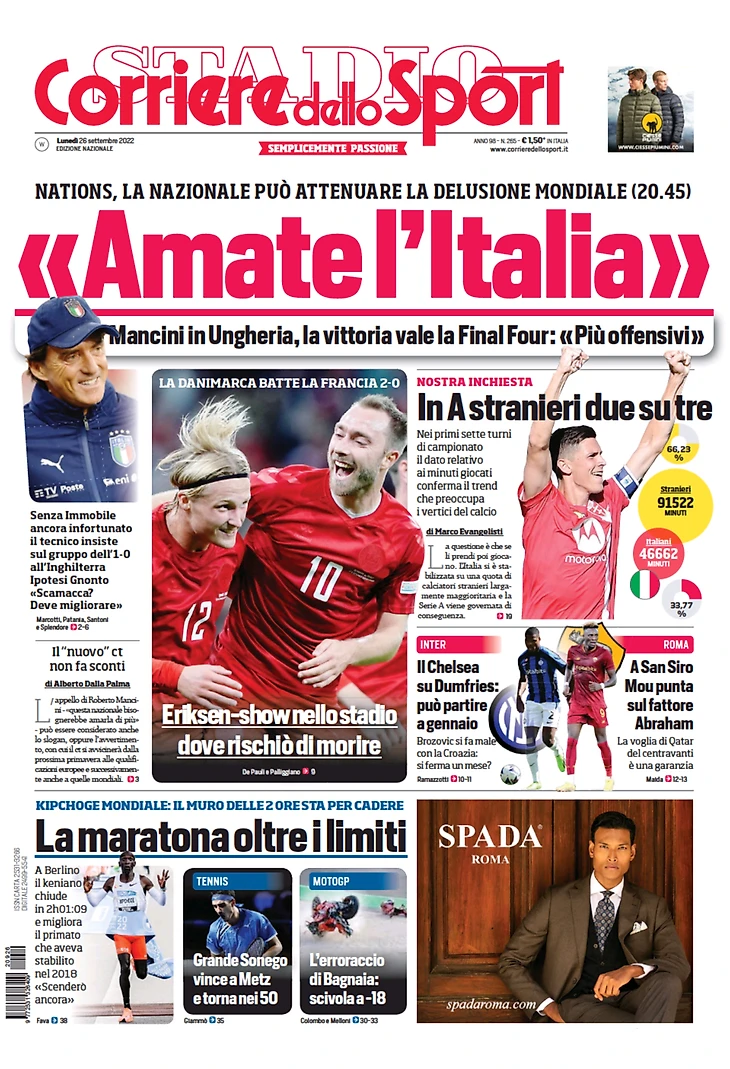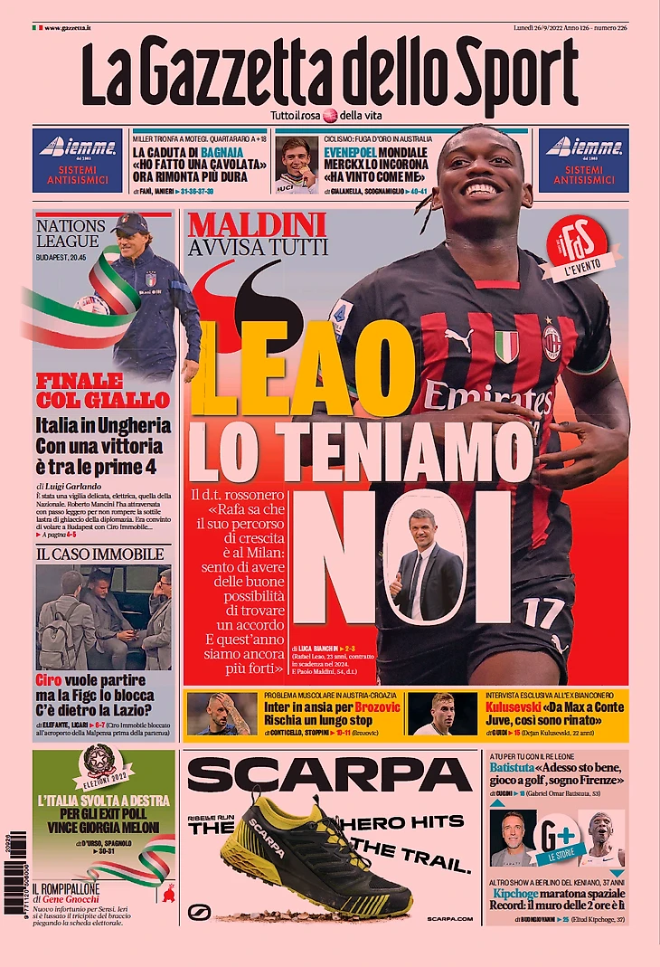 Люблю Италию. Заголовки Gazzetta, TuttoSport и Corriere за 26 сентября