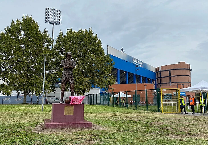 Стадион окрашен в цвета компании Скуинци Mapei, но встречаются и гранатовые тона «Реджаны» – например, на памятнике одному из основателей клуба Северино Таддеи, который играл и тренировал тут сто лет назад.