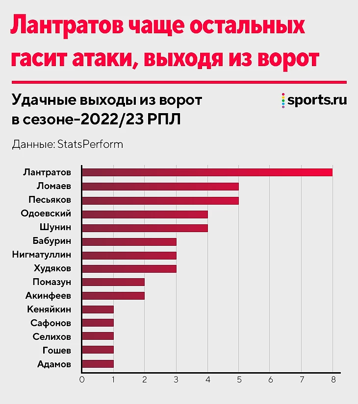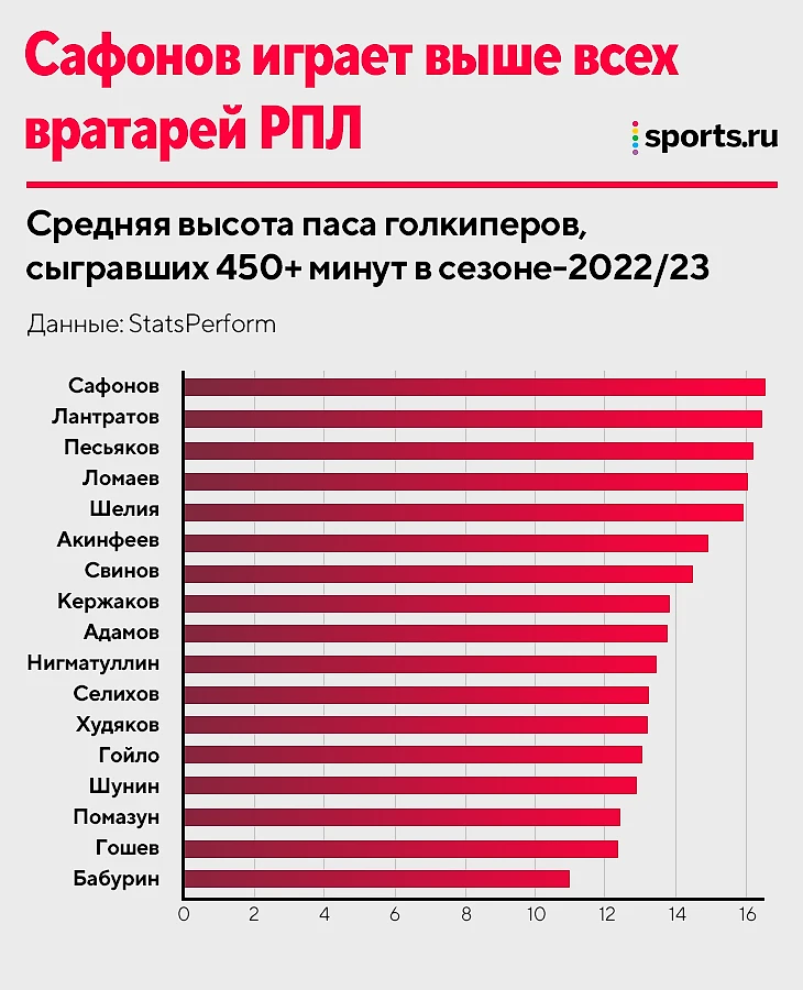 Новый тренд приводит к неожиданным ситуациям. Песьяков и Ломаев – среди лидеров высоте действий среди вратарей. В матче «Ростова» и «Крыльев» их трижды пытались наказать за высокую линию (треть ударов из-за штрафной). Сафонов и Лантратов пошли еще дальше – Матвей планировал забросить за шиворот Илье ударом со своей половины, попытка не попала в статистику Whoscored.