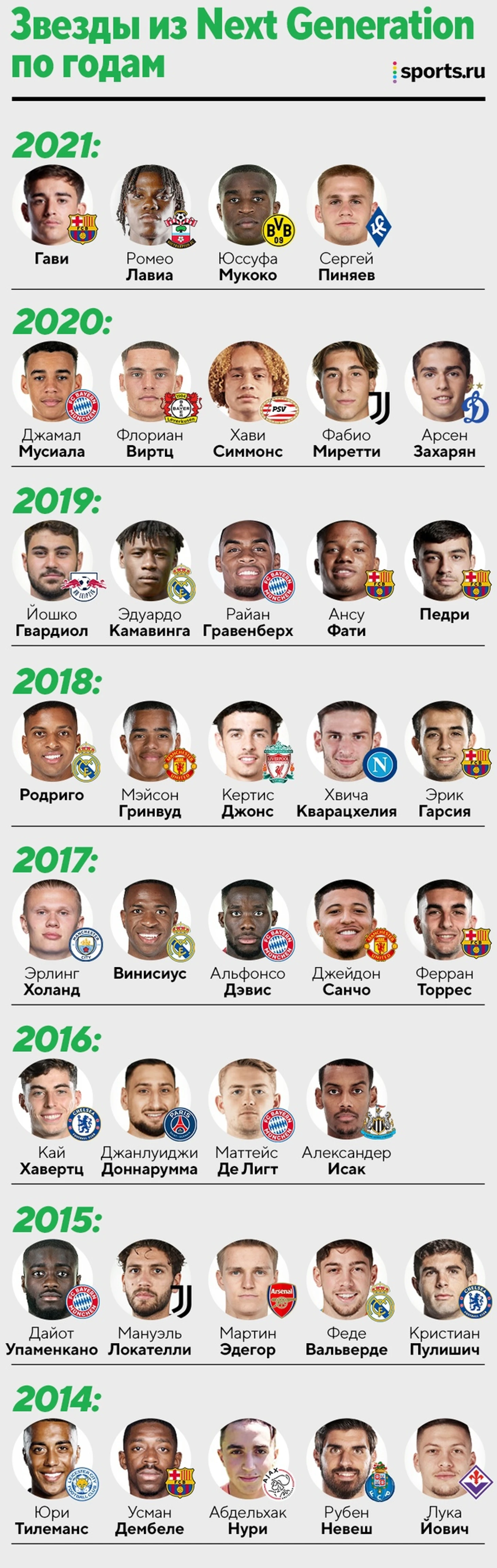 Каждый год английский The Guardian выпускает топ главных талантов мирового футбола – Next Generation. Туда попадают 60 самых перспективных 17-летних футболистов со всего света (считают обычно по году рождения, сейчас – 2005-й). Залетают даже гости из экзотических Мавритании или КНДР.