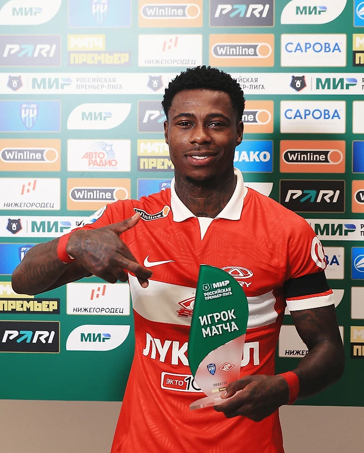 Полузащитник «Спартака» Квинси Промес признан лучшим игроком матча 11‑го тура МИР РПЛ с «ПАРИ НН» (2:1).