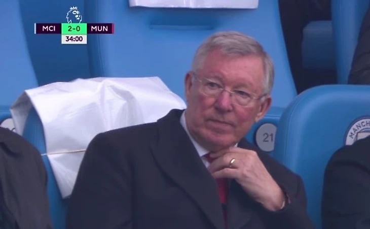 В воскресенье «Манчестер Сити» выдал шоу в дерби с «Манчестер Юнайтед» (6:3). Перед перерывом, при счете 4:0, режиссер трансляции уже традиционно выхватил в кадр Алекса Фергюсона. Легендарный тренер явно был расстроен.
