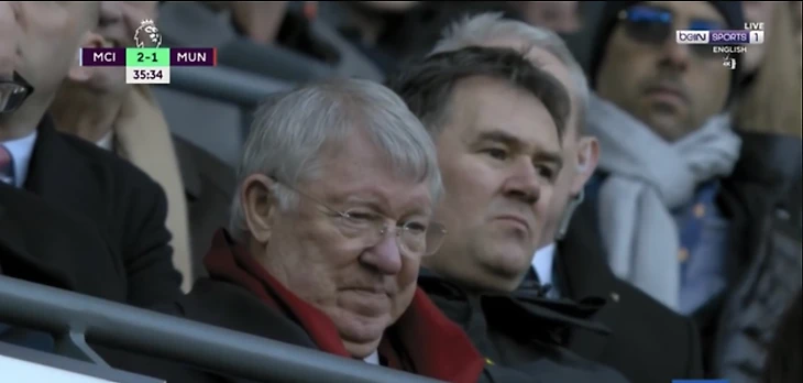 Перенесемся в 7 апреля 2018-го – «Ман Юнайтед» на «Этихаде» пропускает два гола за пять минут. После перерыва будет камбэк – с дублем Погба и мячом Смоллинга. Но пока сэр Алекс об этом не знает, а потому выглядит крайне печально.