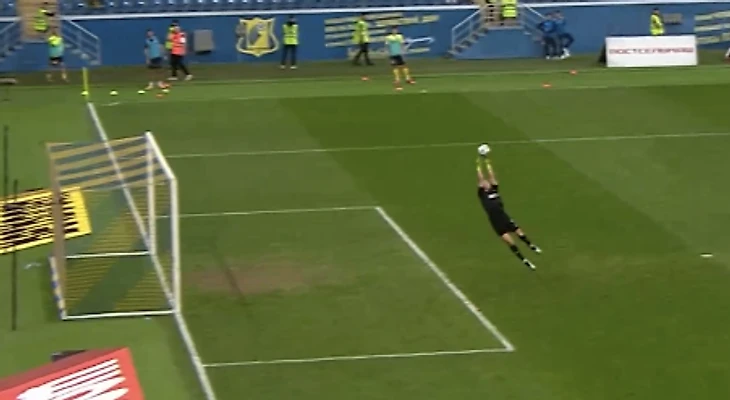 Краснодар—Химки Очень породистый сейв Лантратова. Пусть и дистанция не маленькая, но удар и сильный, и точный.