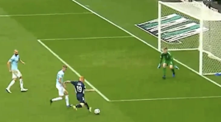 А похоже у Помазуна это системная ошибка. Опять вратарь находится слишком глубоко на ленточке. Нападающий болтает защитника, так выдвинься к нему ближе, сократи угол. Чего стоять на ленточке?