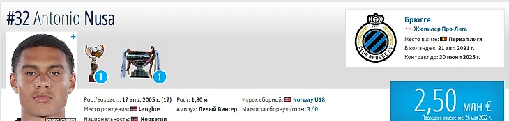В сентябре Нуса стал вторым самым молодым бомбардиром Лиги чемпионов в истории в возрасте 17 лет и 149 дней, забив гол в своем турнирном дебюте в победе «Брюгге» над «Порту» со счетом 4:0. Это неудивительно для тех, кто следил за вундеркиндом с тех пор, как он появился на сцене в Стабеке в прошлом году. Проданный в «Брюгге» за 3 миллиона евро в августе 2021 года, Нуса провел последний сезон, в основном играя за свою команду до 21 года, но вышел на замену и забил гол в решающем матче за титуле на «Юнион Сент-Гиллуаз». В этом сезоне он пообещал стать постоянным игроком основного состава – и сдержал свое слово. Хитрый вингер боготворил Неймара, говоря: «Он создает хаос на поле своим дриблингом, как и я». Нуса предпочитает играть на левом фланге, но его влияние практически одинаково на правом фланге или даже на позиции центрального нападающего.