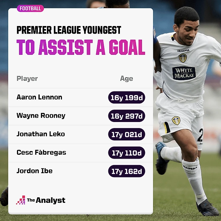 В истории Премьер-лиги есть лишь два 16-летних подростка, отдавших свою первую голевую передачу. Пусть Уэйн Руни и является одним из четырёх игроков, которые отдали более 100 голевых передач в Премьер-лиге, но он оказался старше Аарона Леннона на 98 дней.