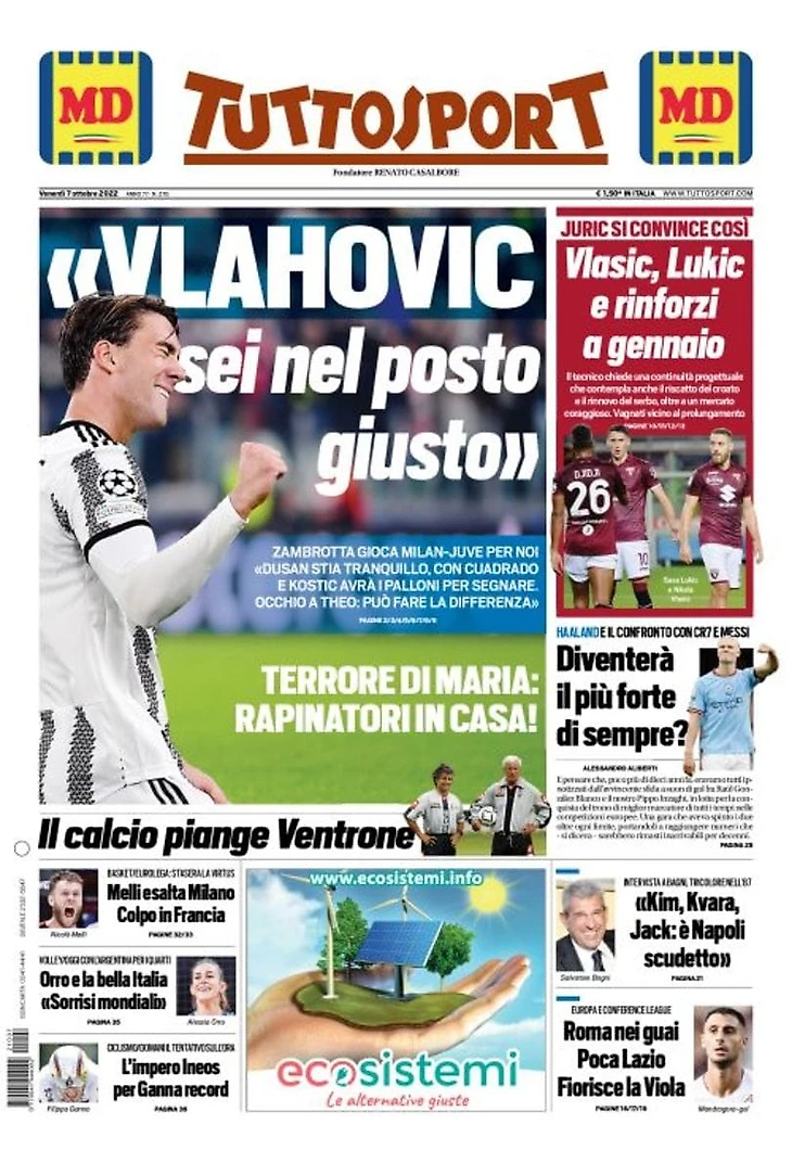 Дзамбротта разыгрывает «Милан»-«Юве» для нас: Душан, будь уверен, с Куадрадо и Костичем, ты получишь мячи, чтобы забивать. Внимание на Тео: он может делать результат».