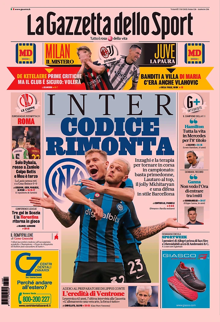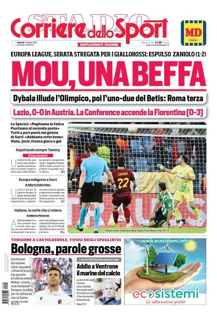 Моур, пощёчина. Заголовки Gazzetta, TuttoSport и Corriere за 7 октября