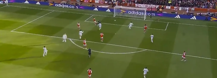 Мерсисайдцы потеряли мяч у чужих ворот и получили быструю контратаку, которую провели Букайо Сака, Мартин Эдегор и Габриэль Мартинелли. Именно последний нырнул за спину Тренту Александеру-Арнольду, который потерял свой правый фланг и оказался в центре защиты. Бразильцу оставалось лишь пробить мимо Алиссона.