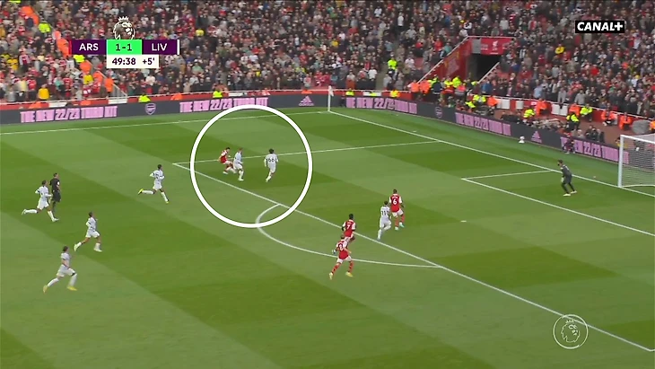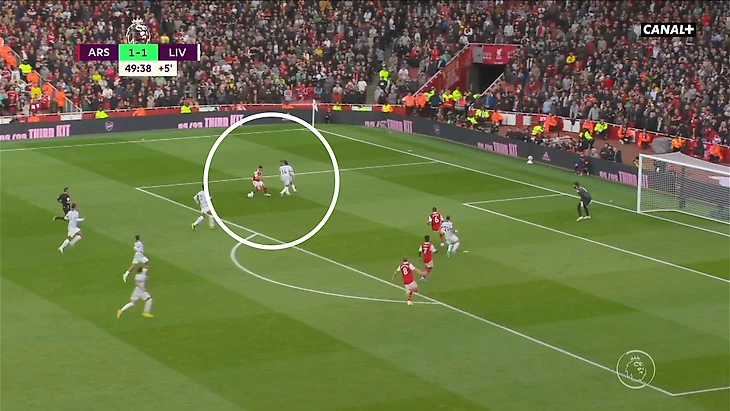 Но Мартинелли легко убрал обоих игроков «Ливерпуля» на ложном замахе: