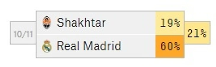 «Реал Мадрид» является лидером группы F: подопечные Карло Анчелотти выиграли три предыдущих матча, и победа над «Шахтером» завтра обеспечит им выход в плей-офф. Команда из Донецка пока занимает вторую строчку в группе.