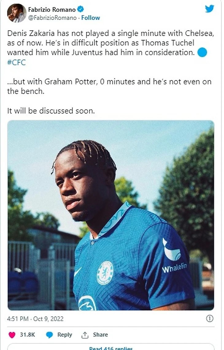 По информации главного инсайдера Фабрицио Романо, Закария попал в «Челси» по просьбе Томаса Тухеля, но немецкий специалист покинул «Стемфорд Бридж», а его приемник Грэм Поттер не большой поклонник игрока «Ювентуса».