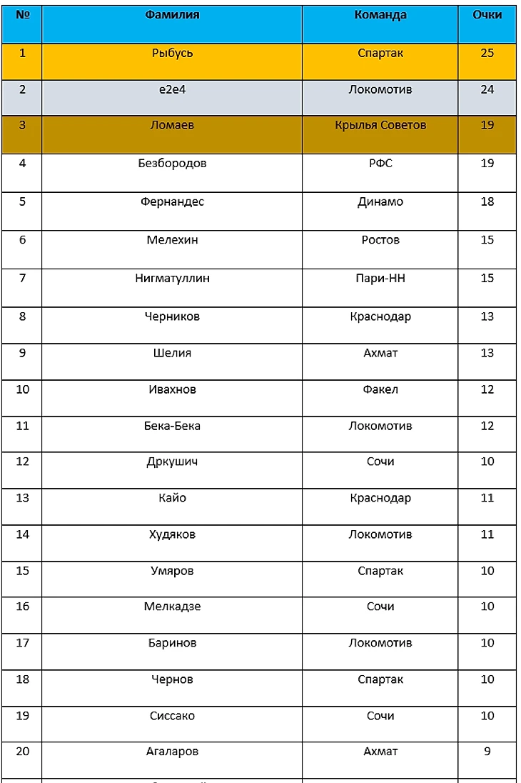 Перед оглашением очередного списка особо отличившихся футболистов Мир РПЛ в минувшем туре, мы хотим немного похвастаться. Последние пять прогнозов из пяти на чемпионат России по футболу прошли, а специально для наших подписчиков VK, была специальная ставка, которая тоже прошла. Напоминаем, что мемы, прогнозы, полная таблица трупДжи и многое другое у нас в группе VK - ссылка.