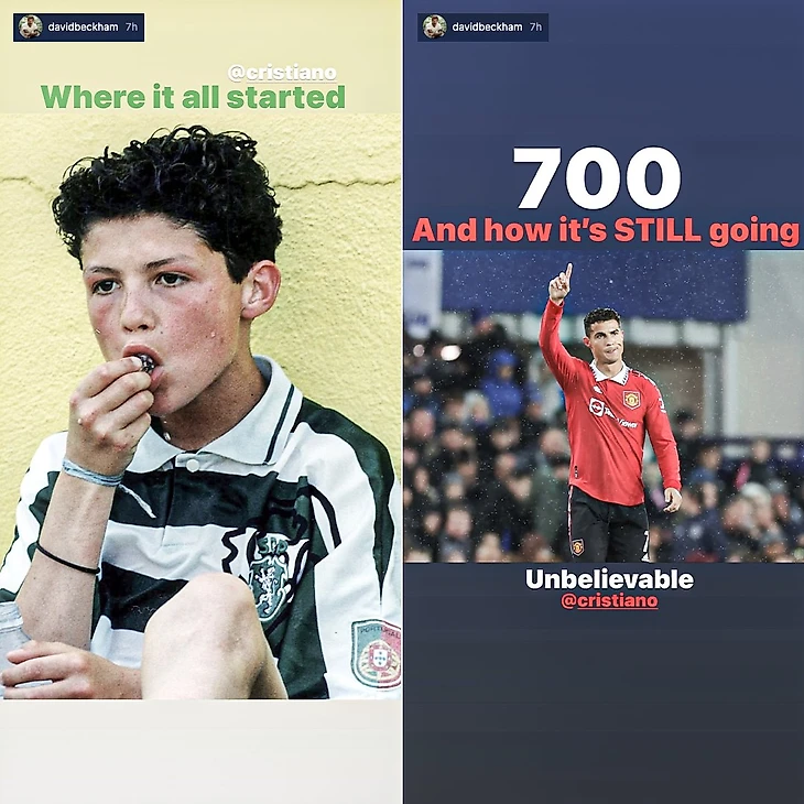 «Невероятно!» Дэвид Бекхэм поздравил Роналду с 700-м голом его детской фотографией