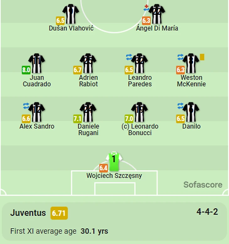 По версии SofaScore, лучшим был Хуан Куадрадо - у него оценка 8,0.