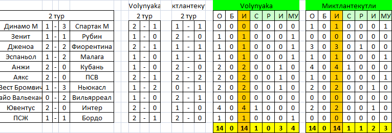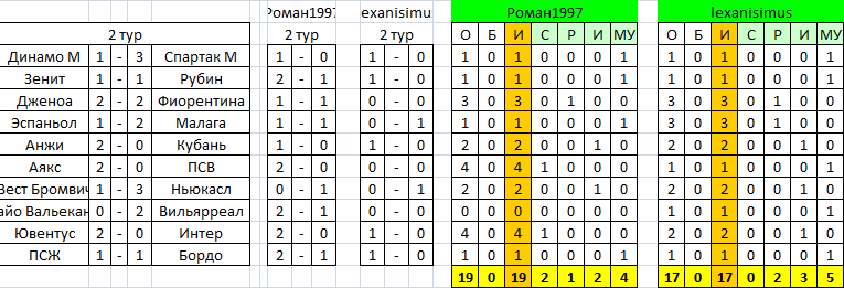№1: Станислав Чудин и ЕдРо, которым уделим в первый и последний раз внимание. Ноль очков, ноль побед и ноль забитых голов не потому, что не угадывают, а потому, что их самих нет в Турнире. Пусть и приоритеты у каждого свои, и не они первые или последние, однако чисто человеческая тенденция налицо – здесь играть просто так, механически отчего-то не получается, и Турнир выдавливает таких участников. Что ж, пока тенденция имеет продолжение.