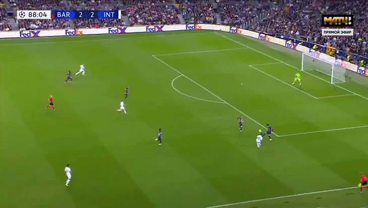 В первом тайме система работала, и не смотря на то, что Интернет активно растягивал Барселону по вертикали поля, компактность сине-гранатовые сохраняли. Интер был лишен мяча и контратаки получались хоть и очень острыми, но достаточно редкими.