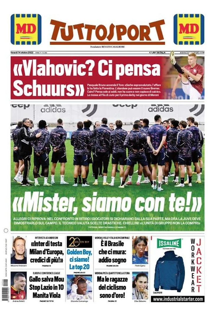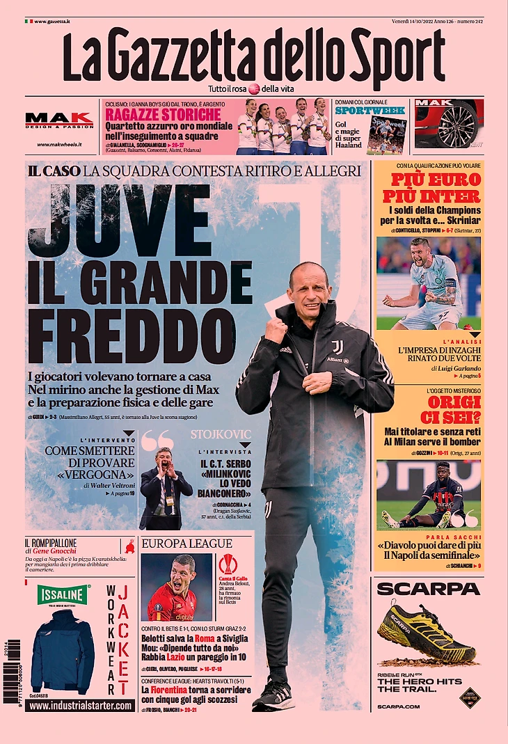 «Мистер, мы с тобой». Заголовки Gazzetta, TuttoSport и Corriere за 14 октября