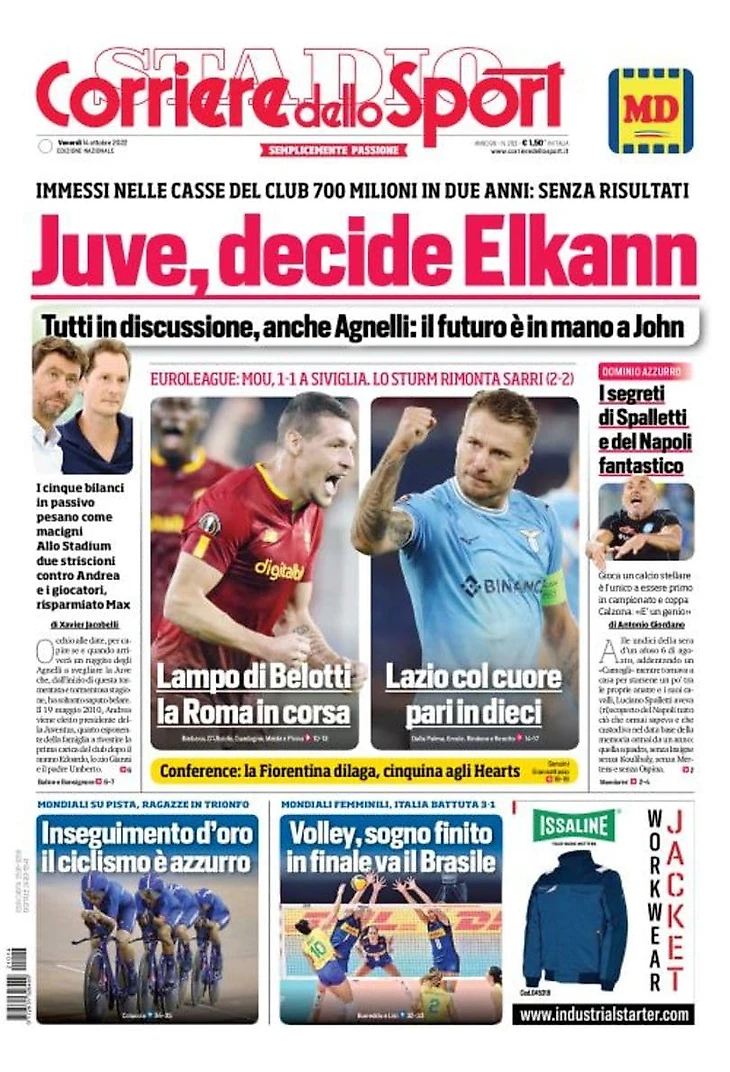 В кассу клуба внесены 700 миллионов за два года: без результатов. Все обсуждаются, даже Аньелли: будущее в руках Джона. Пять бюджетов с убытком весят как горы. На «Стэдиуме» две растяжки против Андреа и игроков, Макса пощадили.