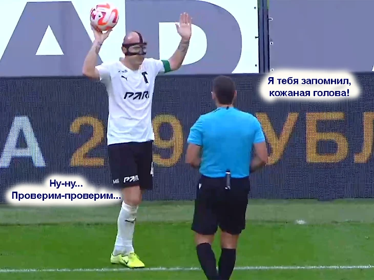 Матч был определённо не сложным для работы арбитра, хоть и носил статус «дерби». В отсутствие высокой интенсивности игры, было достаточно несложной задачей его не испортить, и Евгений Кукуляк из Калуги вполне с ней справился. У чёрно-белых, в принципе, могут возникнуть к нему вполне справедливые претензии по поводу двух, показанных им жёлтых карточек, но на результат игры они, безусловно, никак повлиять не могли. Можно только гадать, справился ли бы арбитр с большей степенью накала в игре, если бы таковая возникла, но для довольно спокойного и размеренного течения матча текущей его квалификации вполне хватило. Остановки игры — 26 (12 + 14), Ошибки — 3:2. Результат — 78,64.