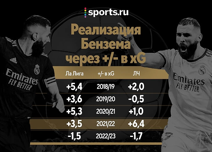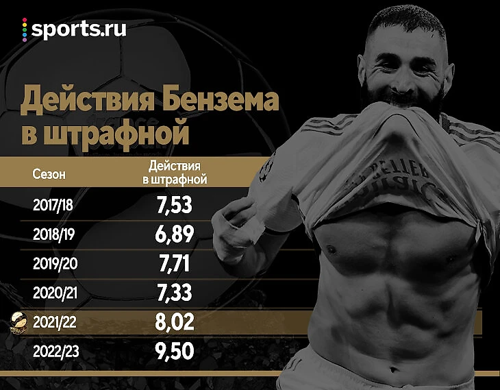 Карим Бензема получил «Золотой мяч»-2021/22 (теперь вручают за сезон – ура-ура!). Давайте ощутим масштабы гениальности француза через пару наглядных таблиц.