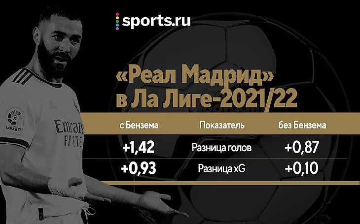 Второй ключевой аспект для награды – командные успехи. «Реал» выиграл Лигу чемпионов и Ла Лигу, а зависимость от Бензема не отрицал даже Карло Анчелотти (просто он считает ее достоинством, потому что Карим почти никогда не подводит). Лучше всего тезис иллюстрируют 0:4 в класико, которое пропускал француз (там тактические проблемы были прямо связаны с его отсутствием), но на дистанции эта тенденция тоже прослеживается. Карим провел 75,8% от общего времени – 24,2% без него были для «Мадрида» намного более грустными: