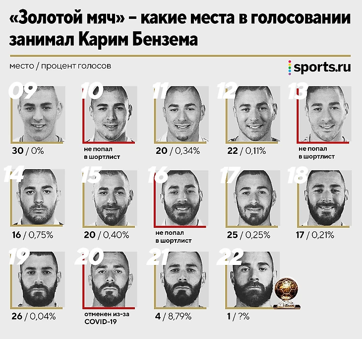 • Пусть вас не смущают места Бенза: вместе со сменой на проценты шортлист сократили с 30 до 23 игроков. А в 2016-м вернули.