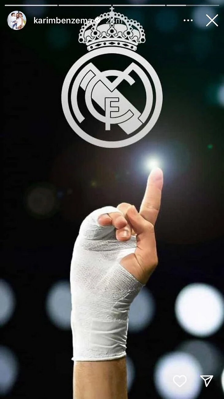 Сначала француз запостил фото с эмблемой. Показалось, что это месседж Килиану о том, какой клуб, по мнению Карима, остается королевским.