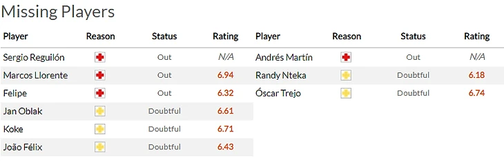 В общем много там народу мячик гоняет, но тренер все равно не сможет рассчитывать на Рубена Пенью(5,5). Защитник все ещё отбывает свою дисквалификацию и пропускает тур.