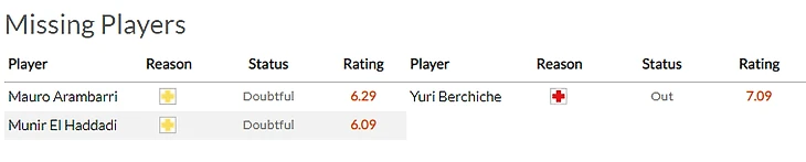 А хозяева восстановили к игре с басками своего афроиспанца Мунира(7), но как и в случае с Йераем не очень понятно в каких кондициях игрок сможет подойти к туру.