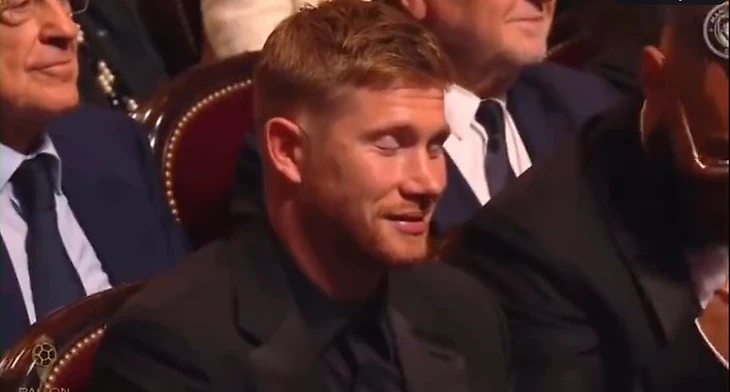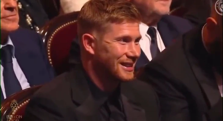 Операторы тут же выхватили лицо одноклубника Холанда Кевина Де Брюйне, который неловко улыбался – ведь вместо того, чтобы дать Роберту насладиться победой, ему зачем-то напоминают о конкуренте.