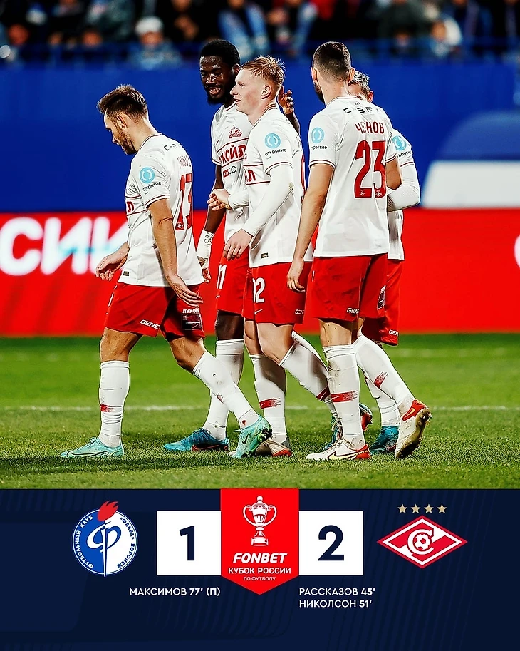 «Спартак» обыграл «Факел» на выезде в матче 4-го тура группового этапа Кубка России — 2:1.