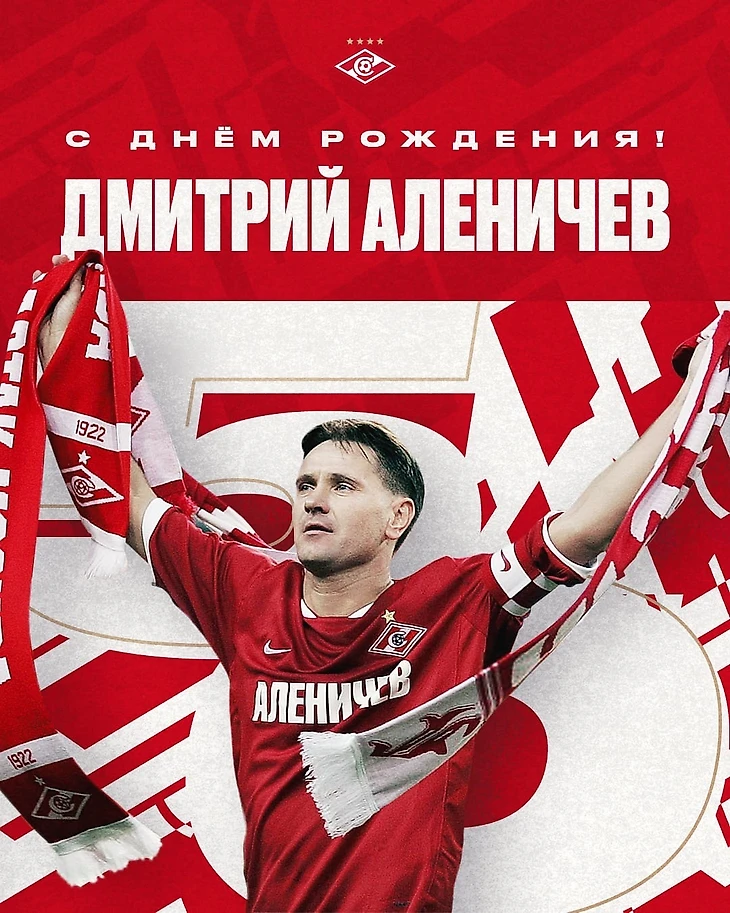 Сегодня исполняется 50 лет ветерану «Спартака» Дмитрию Анатольевичу Аленичеву.