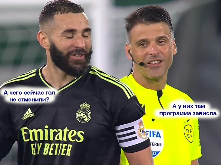 Последней встречей среды был поединок «Эльче» и мадридского «Реала». Гости выставили на поле почти что сильнейшиё состав — по сравнению с воскресным «эль-классико» в старте только Рюдигер и Родриго сменили Чуамени и Менди. Серьёзный настрой на матч определил большое преимущество сливочных по ходу первого тайма. Голкиперу гостей Эдгару Бадии трижды пришлось доставать мяч из сетки ворот. Впрочем, счёт после первых 45-минут был всего лишь 0:1. Голы Бенземы и Алабы были отменены из-за микроскопических офсайдов Виниссиуса и Бенземы соответственно. И только Вальверде, в своём уже узнаваемом стиле вложившему мяч под штангу из-за штрафной, ничто не помешало зажечь на табло свою фамилию. Вторая половина неожиданно началась с атак «Эльче», которые, впрочем, не несли в себе большой угрозы воротам Лунина и, как по мановению волшебной палочки, завершились с очередным отменённым из-за офсайда голом Бенземы на 60-й минуте. На сей раз немного поторопился Карвахаль. Инициатива вновь прочно и уже окончательно перешла к королевскому клубу, но в одной из контратак хозяева получили супершанс сравнять счёт — Карлос Клерк головой бил метров с полутора, но попал прямо в Лунина. А на 75-й минуте Бензема наконец-то оформил взятие ворот в качестве обладателя «Золотого мяча» и снял все вопросы относительно исхода матча. Во время празднования он трижды в шутку изобразил жест видеопросмотра и обменялся парой фраз с главным арбитром встречи — всё-таки не в каждом матче видеоассистенты отменяют сразу три гола (на сей раз, впрочем, вполне справедливо). Ещё на 87-й минуте бывший спартаковец Понсе упустил верный шанс отличиться, послав мяч чуть правее правого дальнего угла, и тут же в ответной атаке едва вышедший на замену и проведший до этого на поле меньше минуты Марко Асенсио довёл преимуество гостей до крупного. 0:3, и «Реал» продолжает возглавлять реестр сильнейших команд Испании.