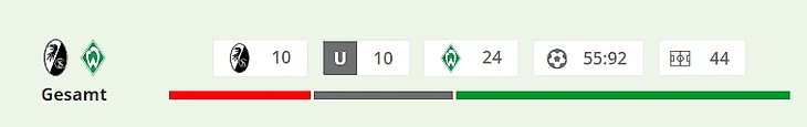 С момента первого попадания «Фрайбурга» в Бундеслигу в 1993 году бременцы одержали больше побед над юго-западным клубом (12), чем любая другая команда, с которой они сталкивались.
