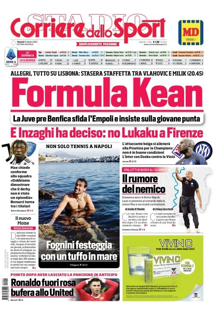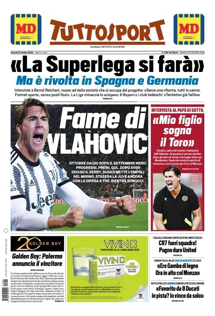 Голод Влаховича. Заголовки Gazzetta, TuttoSport и Corriere за 21 октября