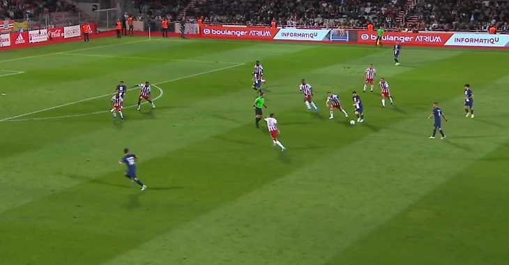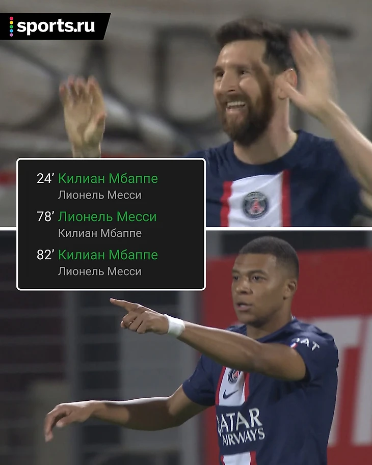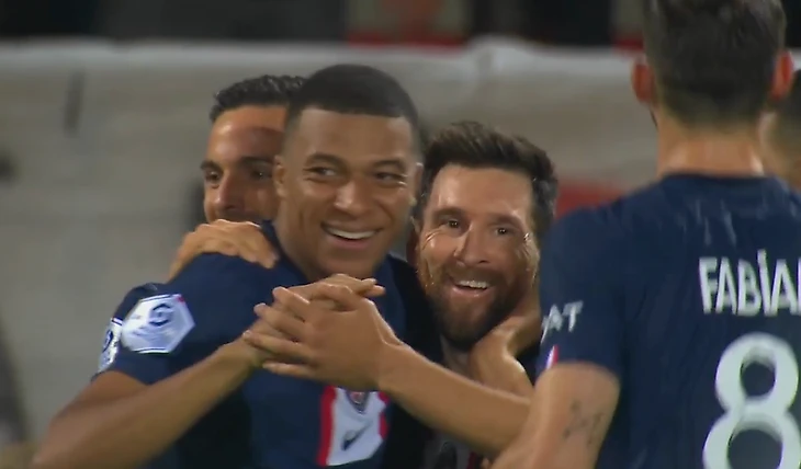 Мбаппе быстро разворачивается и делает роскошный пас пяткой обратно на Лео, который уже ворвался в штрафную. У защитников 0 шансов: