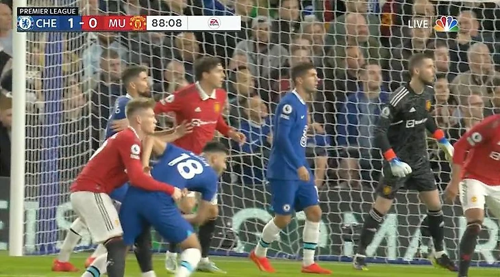 Как ни парадоксально у Челси было больше угловых в матче. Гол пришёл именно со стандарта. Персональная ошибка Мактоминея, хотя и пенальти весьма спорный. Да, опорник Юнайтед держал двумя руками Бройю, но это части борьбы при угловых. Оставим это на суд профессиональным судьям.