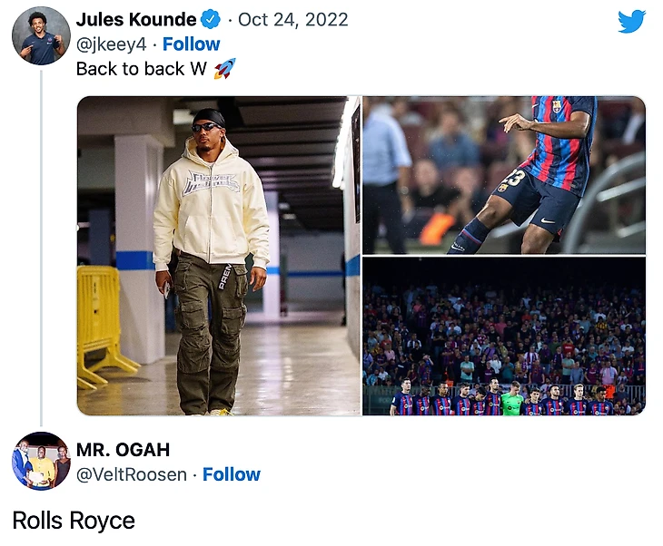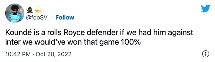 После игры Кунде написал в Твиттере «Back to back W» (Спиной к спине) в ответ на пост «Барсы» об очередной победе в лиге.