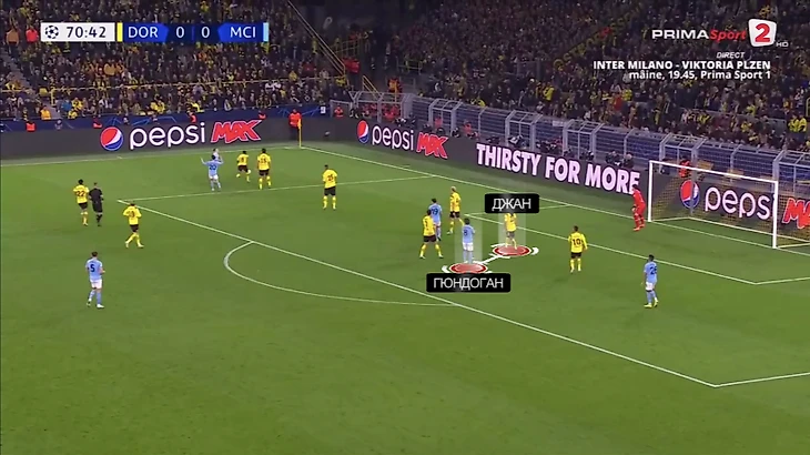 Ход позволил сдержать атаку «Сити» и во втором тайме – кроме пенальти (пришел после быстрого розыгрыша штрафного), гости не создали ни одного явного момента. Обратная сторона медали – теперь «Дортмунд» совсем прижался и перестал выходить в контратаки.
